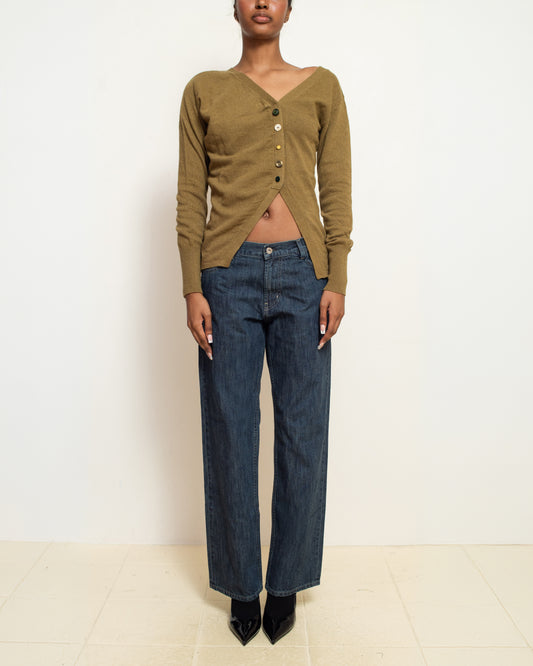 PLĀS Olive Green Asymmetric Cardigan