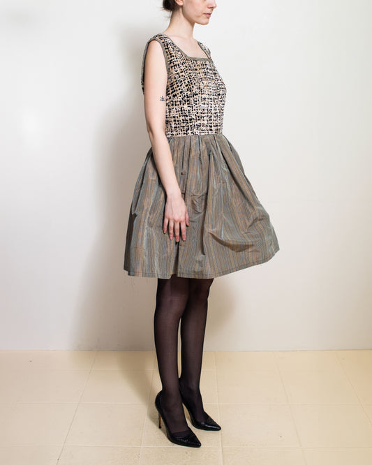 Madeline Malenfant Velvet Metallic Neutral Babydoll Dress