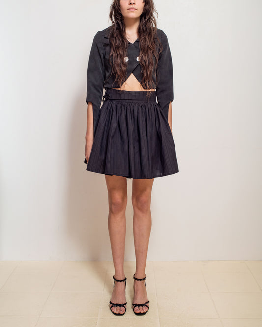 Madeline Malenfant Black Pinstripe Gathered Skirt