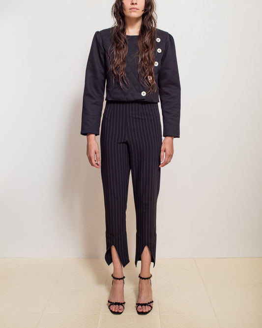 Madeline Malenfant Black Pinstripe Pants