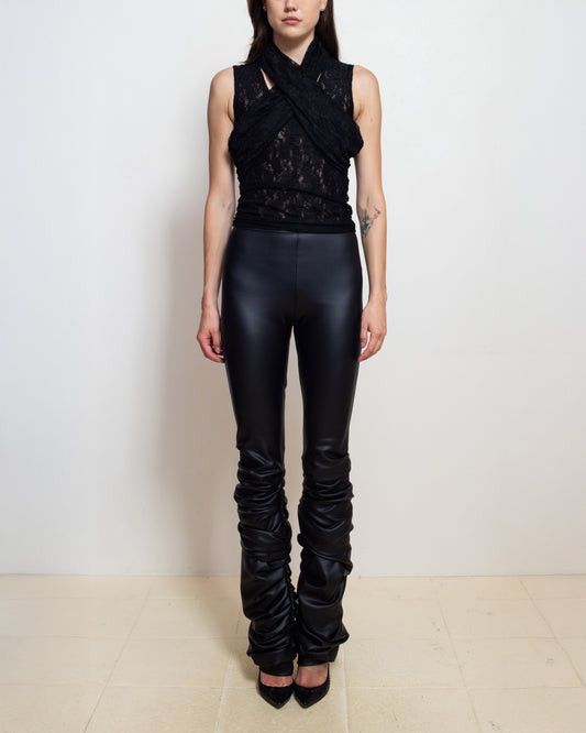 Maroske Peech Black Wet Look Gathered Leggings
