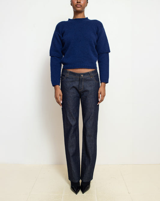 E RT Kingdom E RT N°49 Gentian Blue Shetland Double-Sleeved Crewneck
